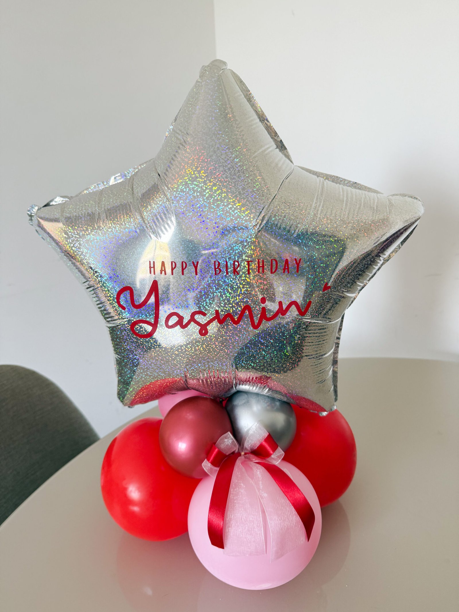 Um arranjo delicado e moderno, com balões em formato de estrela que trazem brilho e destaque para qualquer ocasião. Perfeito para presentear, decorar mesas, celebrar datas especiais ou tornar qualquer momento mais marcante. Personalizamos as cores e detalhes para combinar com o seu estilo ou tema da festa.