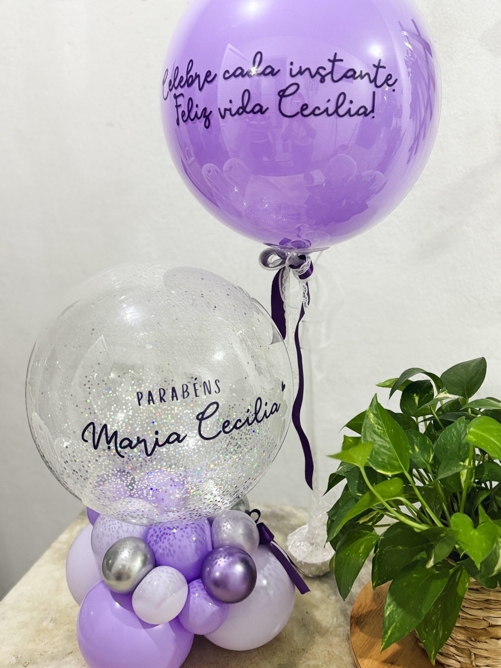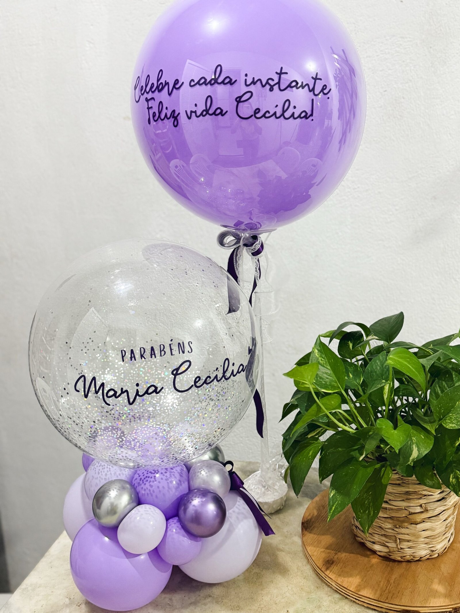 - Arranjo Lume 50cm aprox. + Balão na vareta 50cm encapsulado.